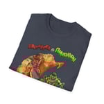 This vintage comic-style tee brings podcast fandom to the front row. A bold, retro hero graphic bursts from the chest in saturated blues, reds and yellows, ringed by motion lines that feel like an old radio serial come alive. The soft, lightweight cotton drapes easily, so you’ll reach for it on recording days, convention runs, or relaxed hangouts where conversation matters more than dress code. Wear it with jeans and a battered jacket to echo the design’s throwback energy, or layer it under a flannel when you want the character and color to peek through. The shirt ages gracefully — the fabric’s subtle texture and natural-color flecks add character that matches the design’s lived-in, collectible vibe.