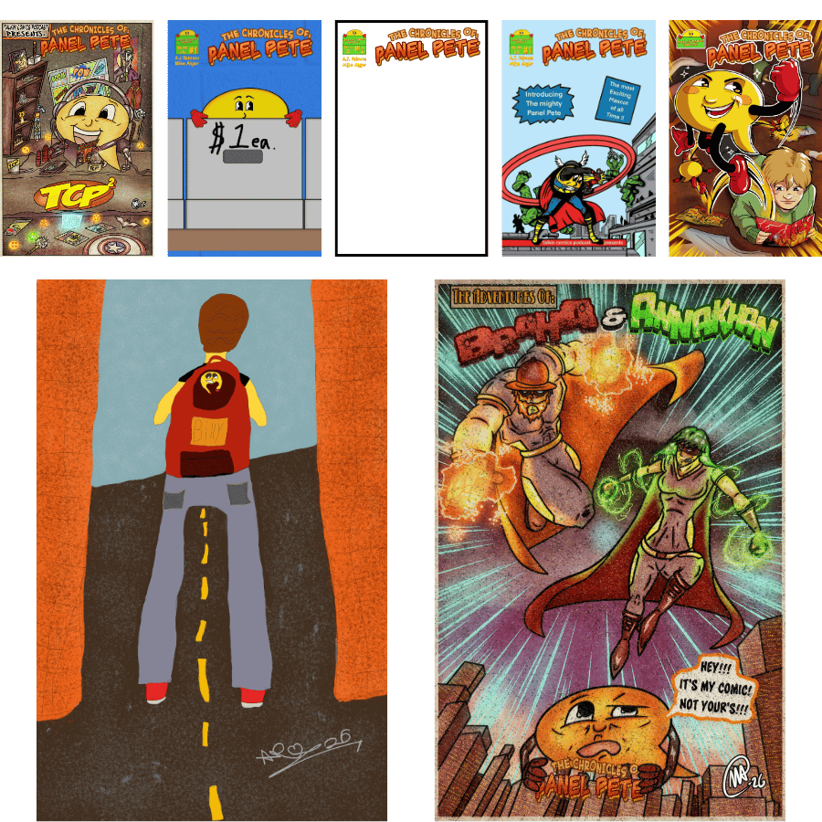 An all-ages, fantasy, one-shot adventure, about a bullied boy who discovers a forgotten dollar-bin comic, its shape-shifting hero escapes the pages and secretly helps him find the courage to stand up, make friends, and rewrite his story.